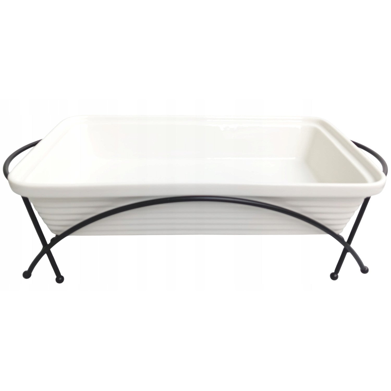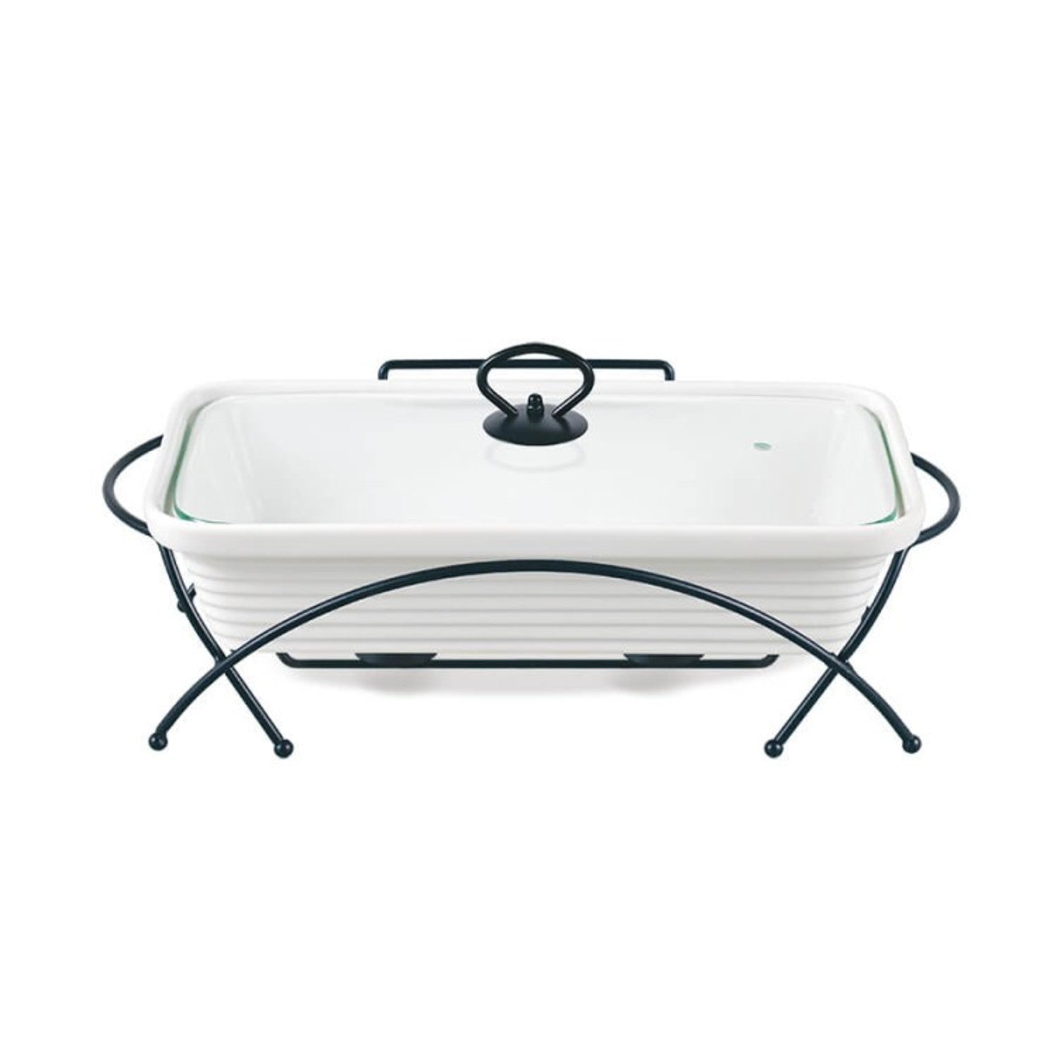 Calientaplatos de cerámica Maestro, rectangular, blanco, capacidad 2,4L, puede utilizarse en el horno, rejilla y tapa con asa incluidas, MR-11562-73