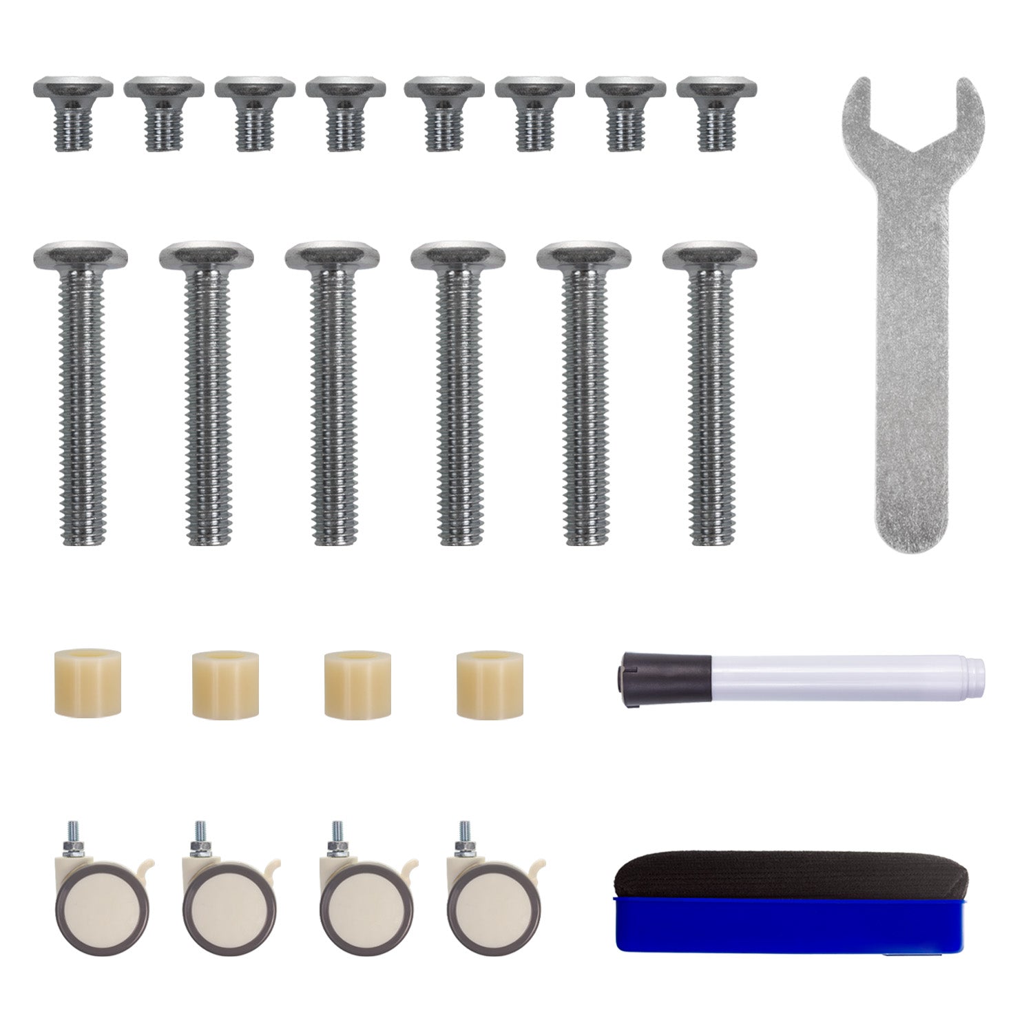 La pizarra blanca está equipada con un estante en el que se pueden guardar cómodamente pequeños accesorios, como el rotulador y la esponja incluidos. De este modo, todos los elementos necesarios están siempre a mano, lo que aumenta la comodidad de trabajo.