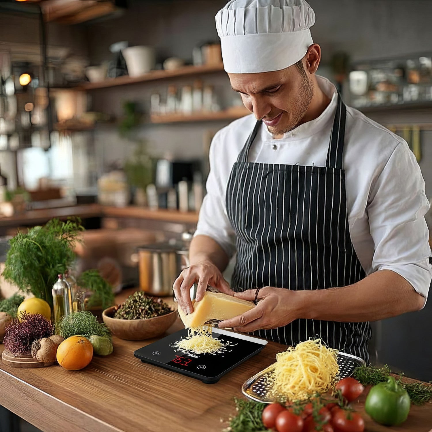 Dispositivo muy moderno de alta calidad con un diseño compacto de color plateado. Muy útil para preparar platos que requieren proporciones de productos estrictamente definidas. Permite un pesaje preciso incluso de pequeñas cantidades de productos.
