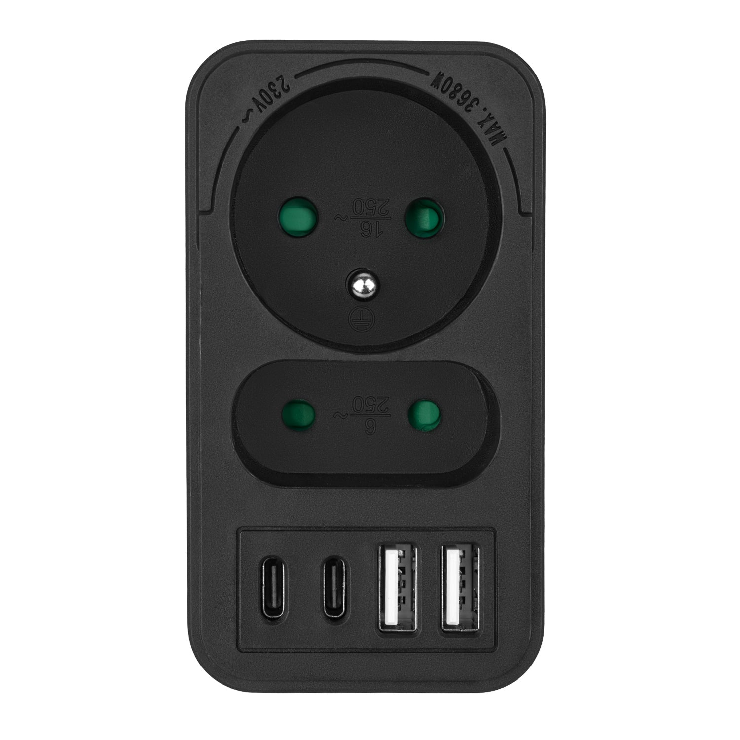 - Divisor con 2 tomas, 2xUSB A, 2xUSB C MCE249 F/B