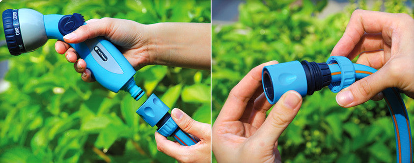 El conector rápido de alta calidad te permite la conexión (y desconexión) rápida y cómoda a la salida de la manguera.