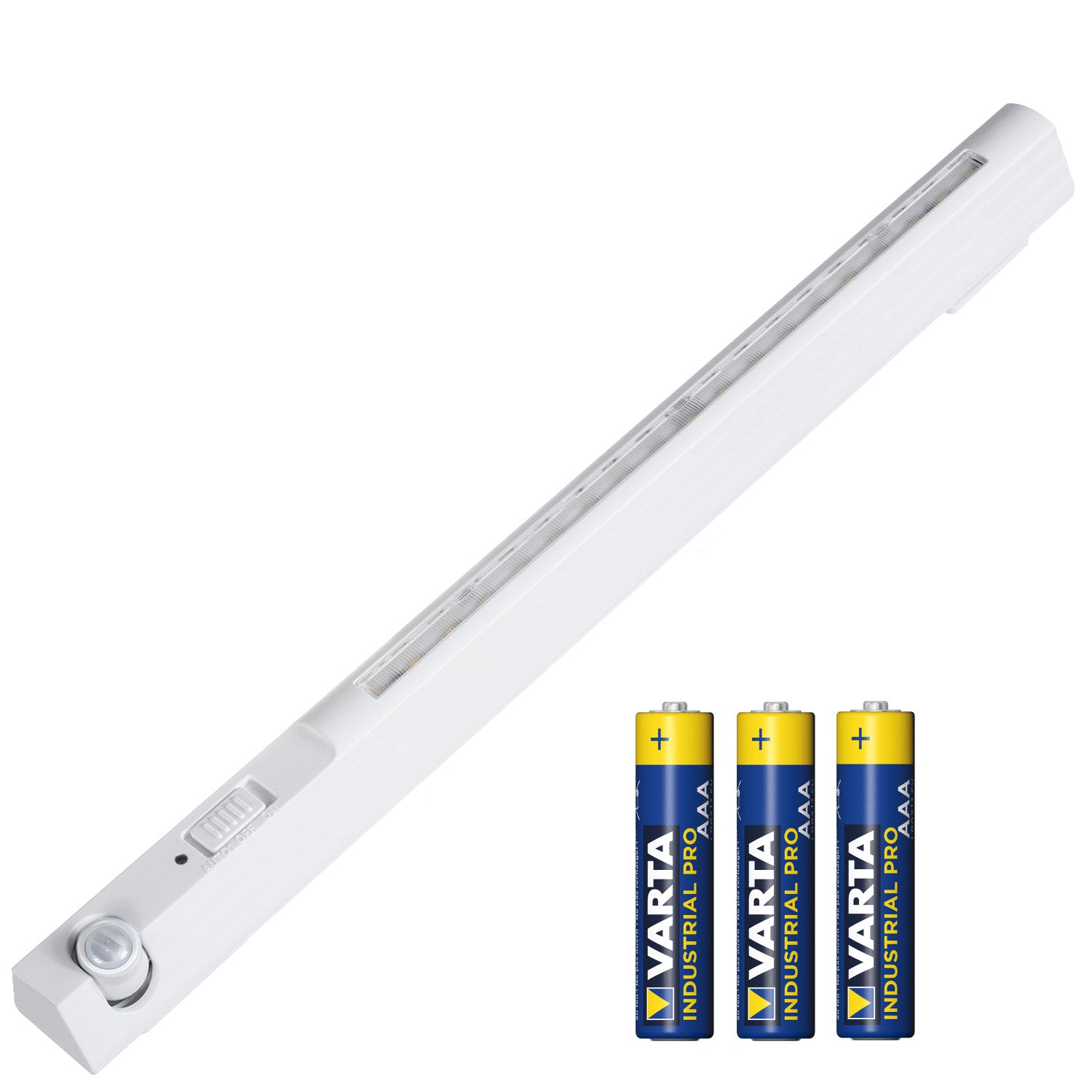 Lámpara LED Maclean, con sensor móvil, gancho, ON/OFF/AUTO, temp. 4000K, alcance 3m, MCE235 + 3x pilas alcalinas Varta Industrial AAA