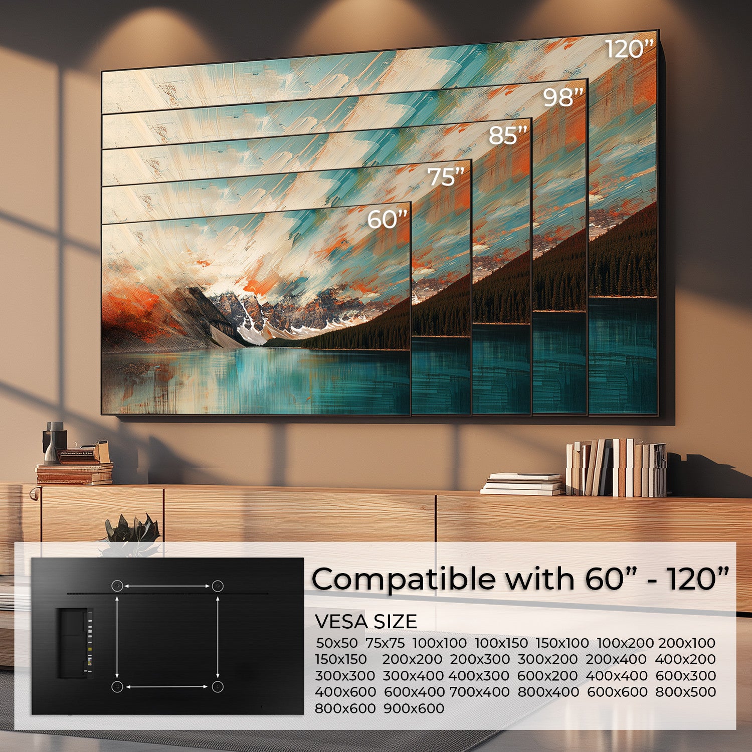 - Adecuado para televisores de 60" a 120" (o más grandes si el peso no supera los 120 kg y el estándar VESA es compatible con el soporte)