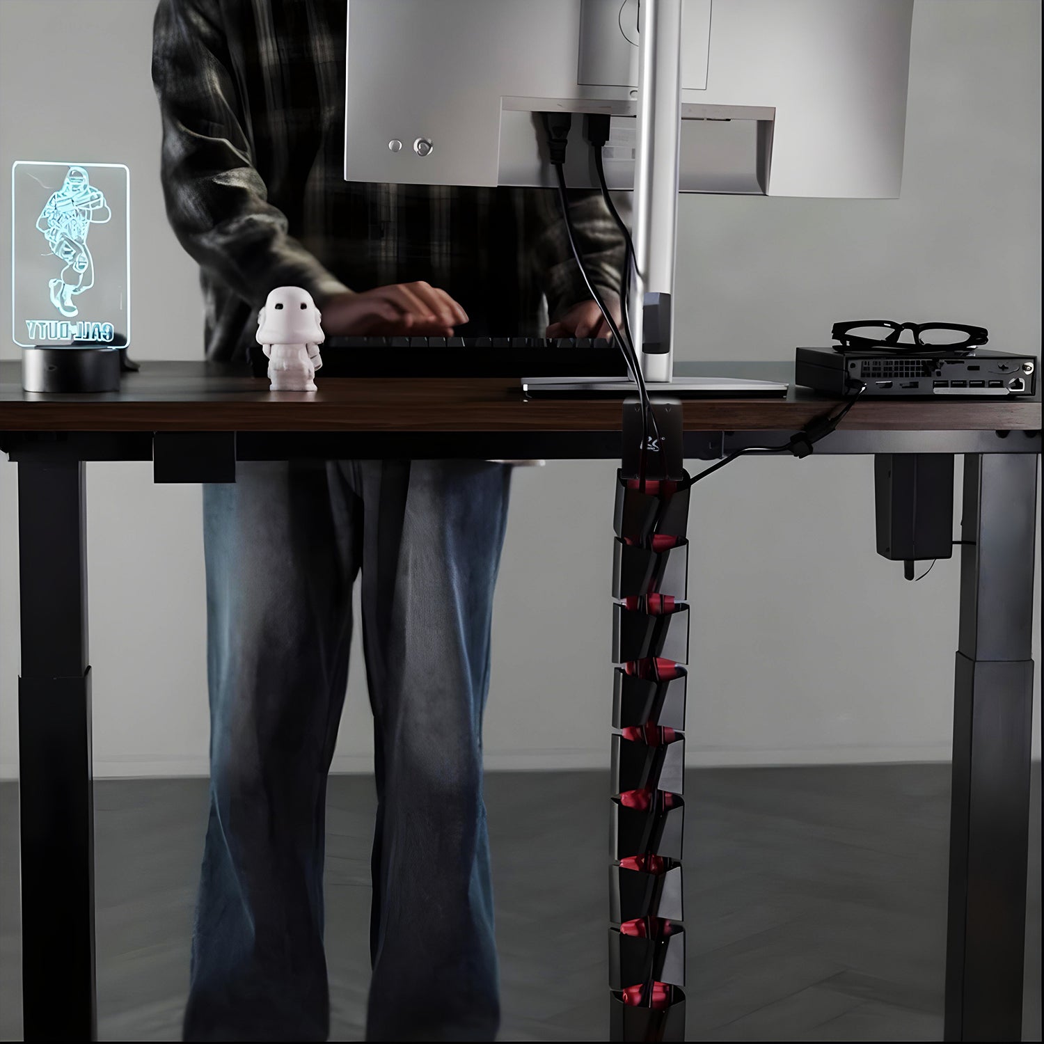 Si está cansado de los cables enredados bajo el escritorio, este organizador es una solución pensada para usted. Gracias a su diseño modular que consta de 20 segmentos, la rejilla para cables se adapta a la disposición de su estación de trabajo, independientemente de si tiene un escritorio para juegos de altura regulable o una estación de trabajo clásica para ordenador. Dos canales independientes permiten separar los cables de alimentación y de señal, lo que no sólo mantiene el orden, sino que también hace que toda la instalación sea más segura y estéticamente más agradable. Un robusto soporte de sujeción permite montar el organizador en el tablero de la mesa sin necesidad de taladrar agujeros.