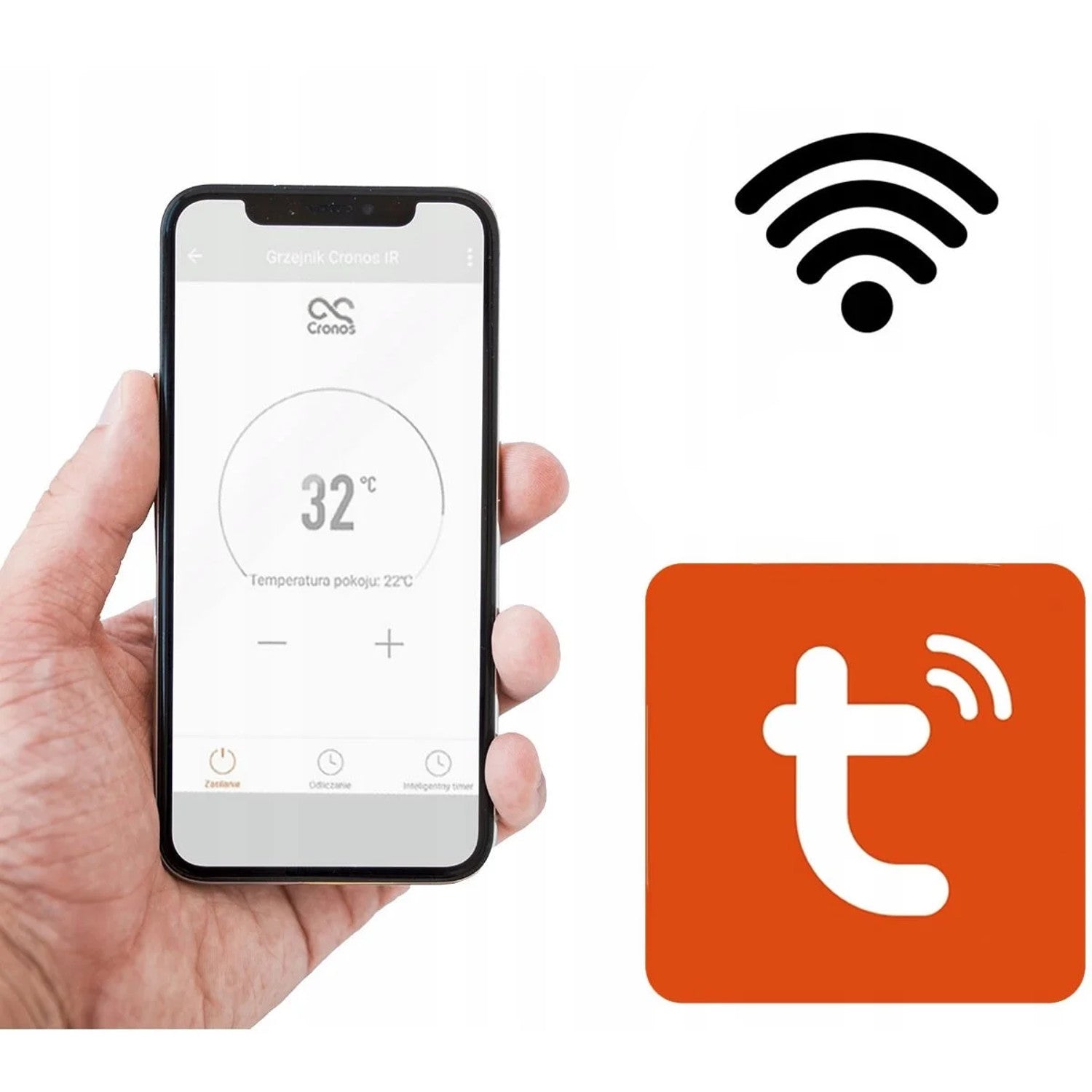 El relé Wi-Fi integrado le permite conectar el calefactor de infrarrojos a su red doméstica y gestionar su funcionamiento desde su smartphone. La instalación de la aplicación especial Tuya Smart en su teléfono le permite: