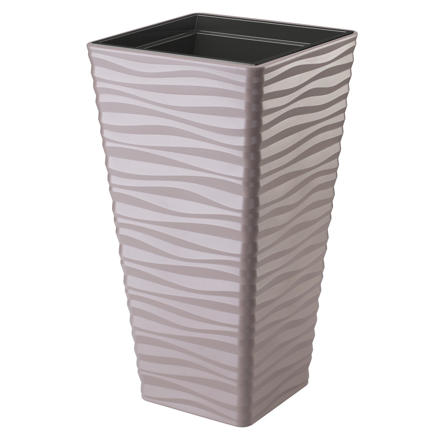 Form-Plastic Sahara Dunes Slim Maceta de plástico con inserto, Resistente a las heladas, Color gris beige, Cuadrado 35cm
