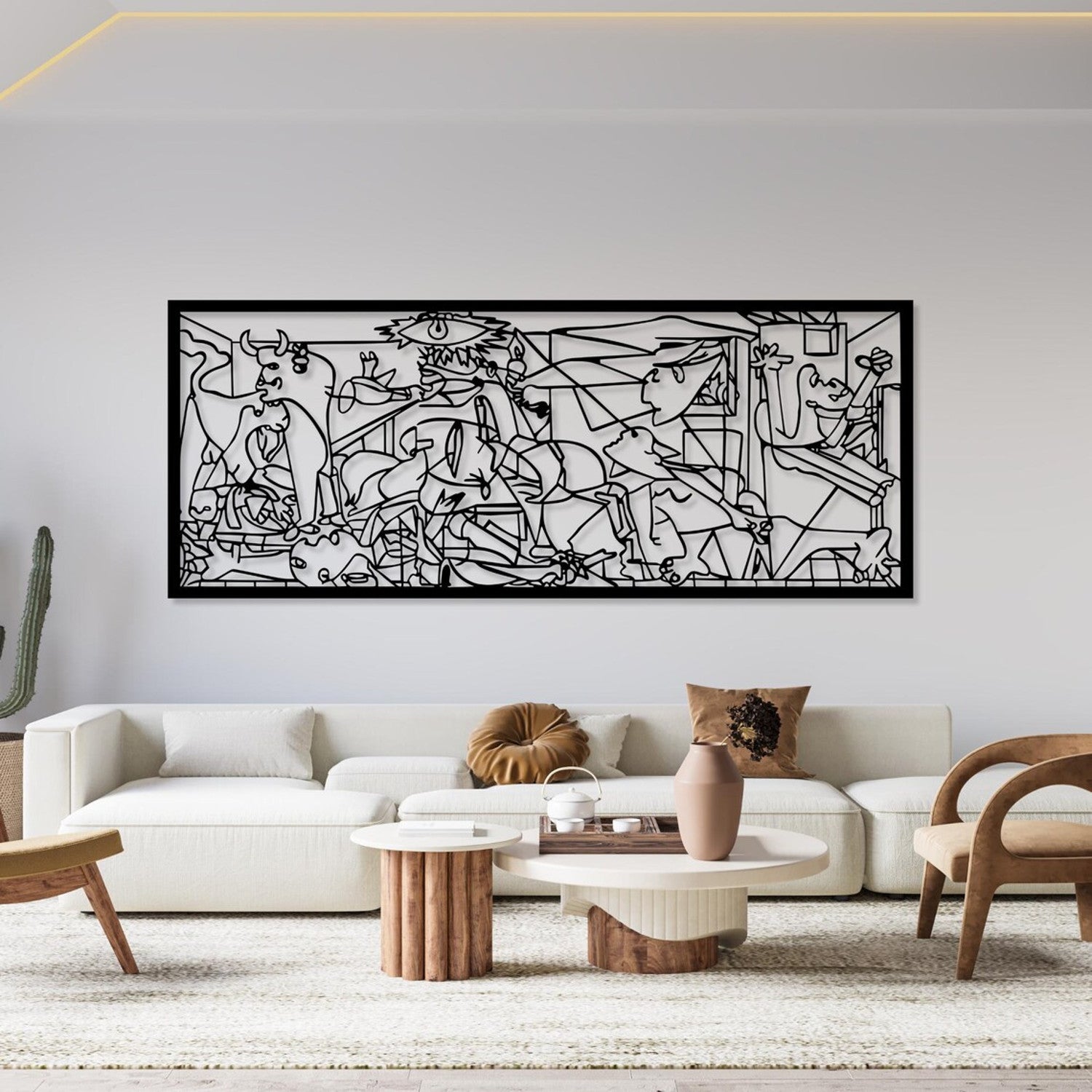 - Cuadro calado, decoración mural 3D, cuadro 3D "Guernica Pablo Picasso" 120x48cm Negro