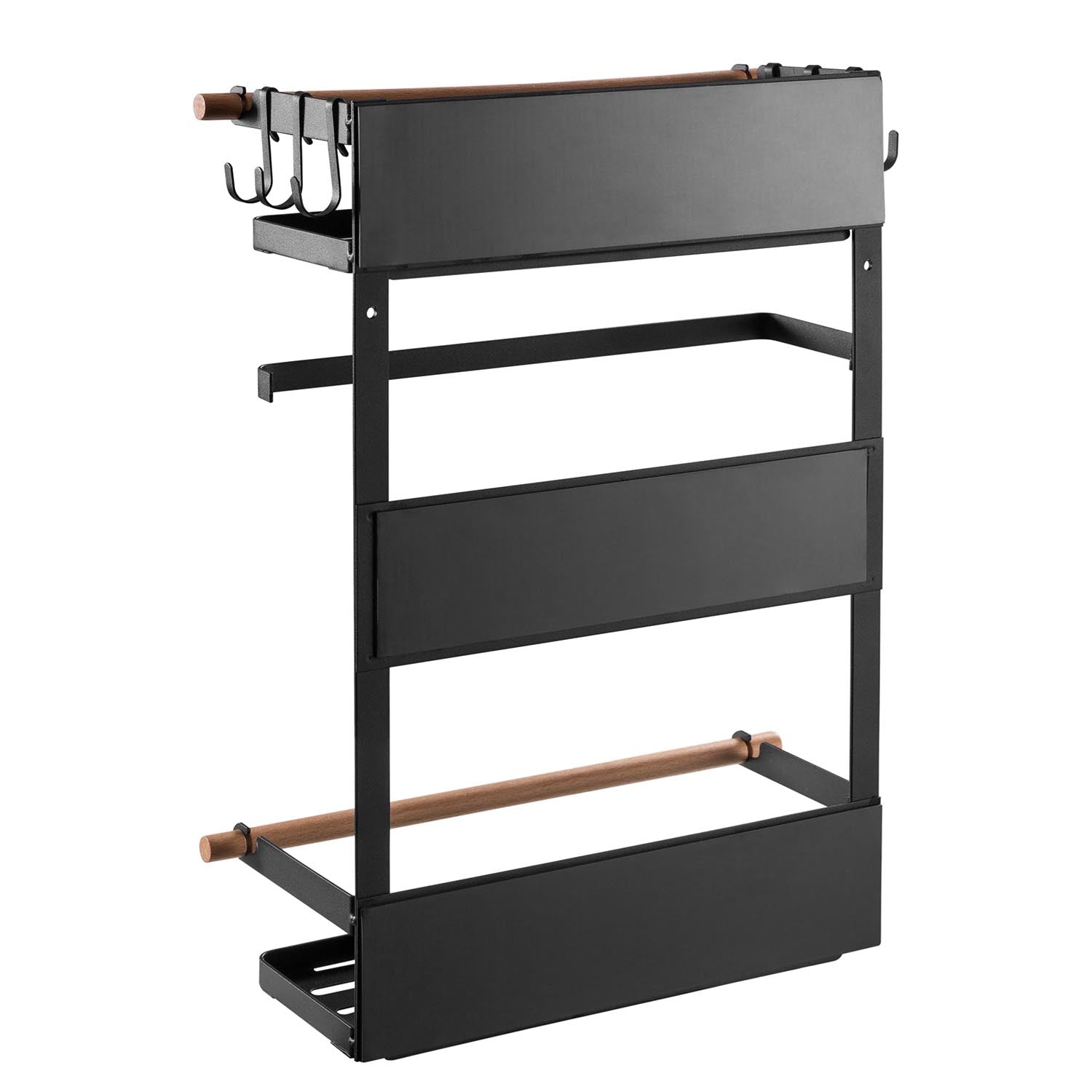 Tres potentes imanes permiten montar la estantería fácil y rápidamente en una superficie metálica, como un frigorífico o una lavadora, sin taladrar ni utilizar herramientas. La capacidad de carga máxima es de 12 kg.