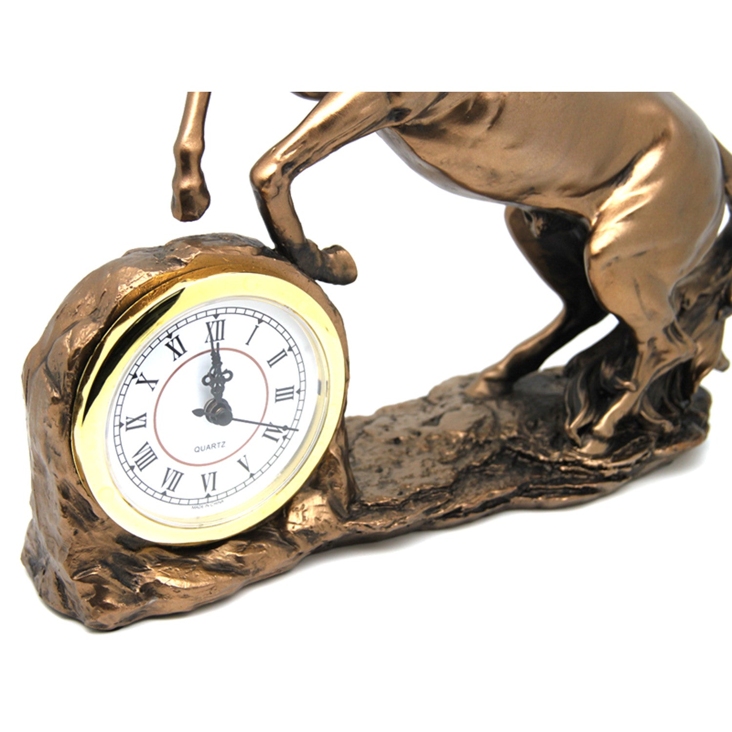 Estatuilla de caballo trepador, reloj, escultura de bronce, números romanos, Reina Isabel