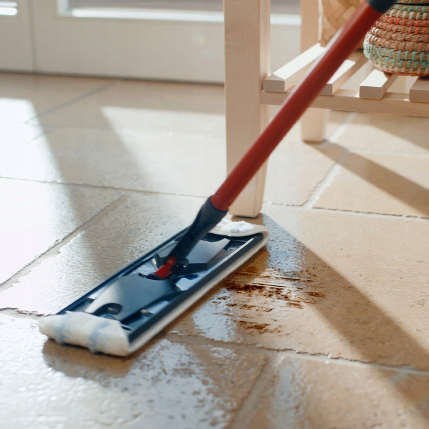 El diseño ergonómico proporciona un manejo sin esfuerzo y un almacenamiento que ahorra espacio - ideal para cualquier hogar. La punta plana de 360° de la mopa llega fácilmente bajo los muebles y rincones, haciendo que la limpieza sea fácil y eficaz.DIFERENTES SUELOS