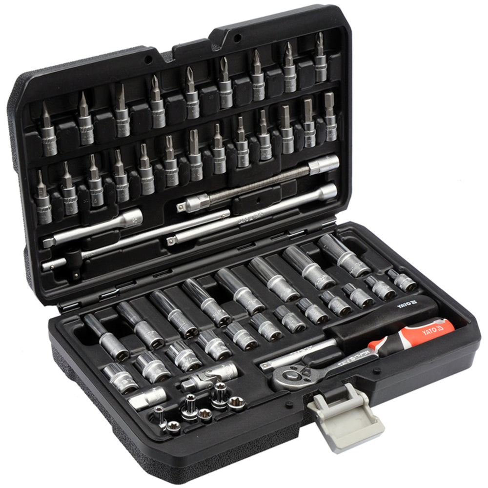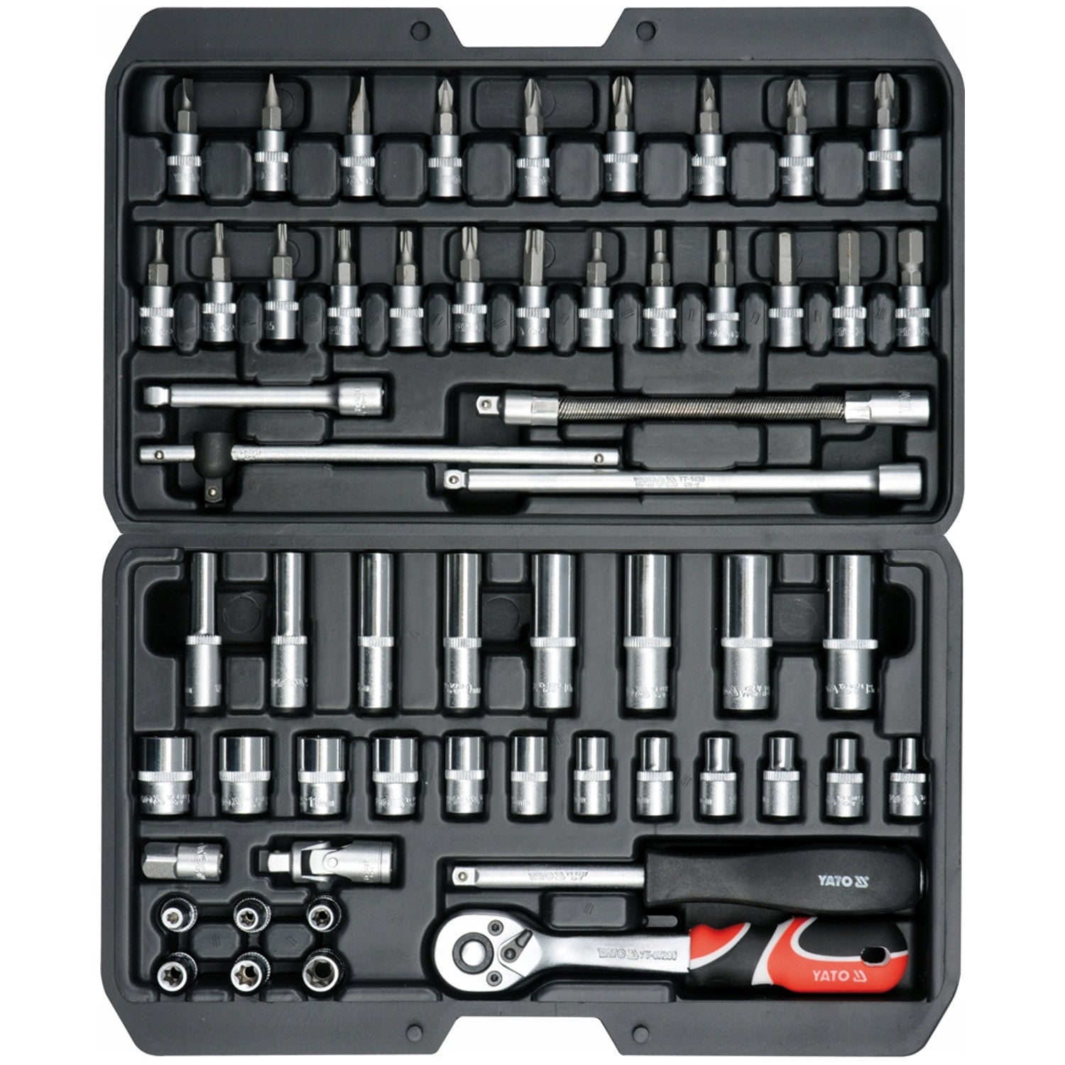 Juego de herramientas profesional Yato, llaves de vaso y cabezales, de acero al cromo-vanadio, 56 piezas, cabezales con sistema AS-Drive, en maletín, YT-14501