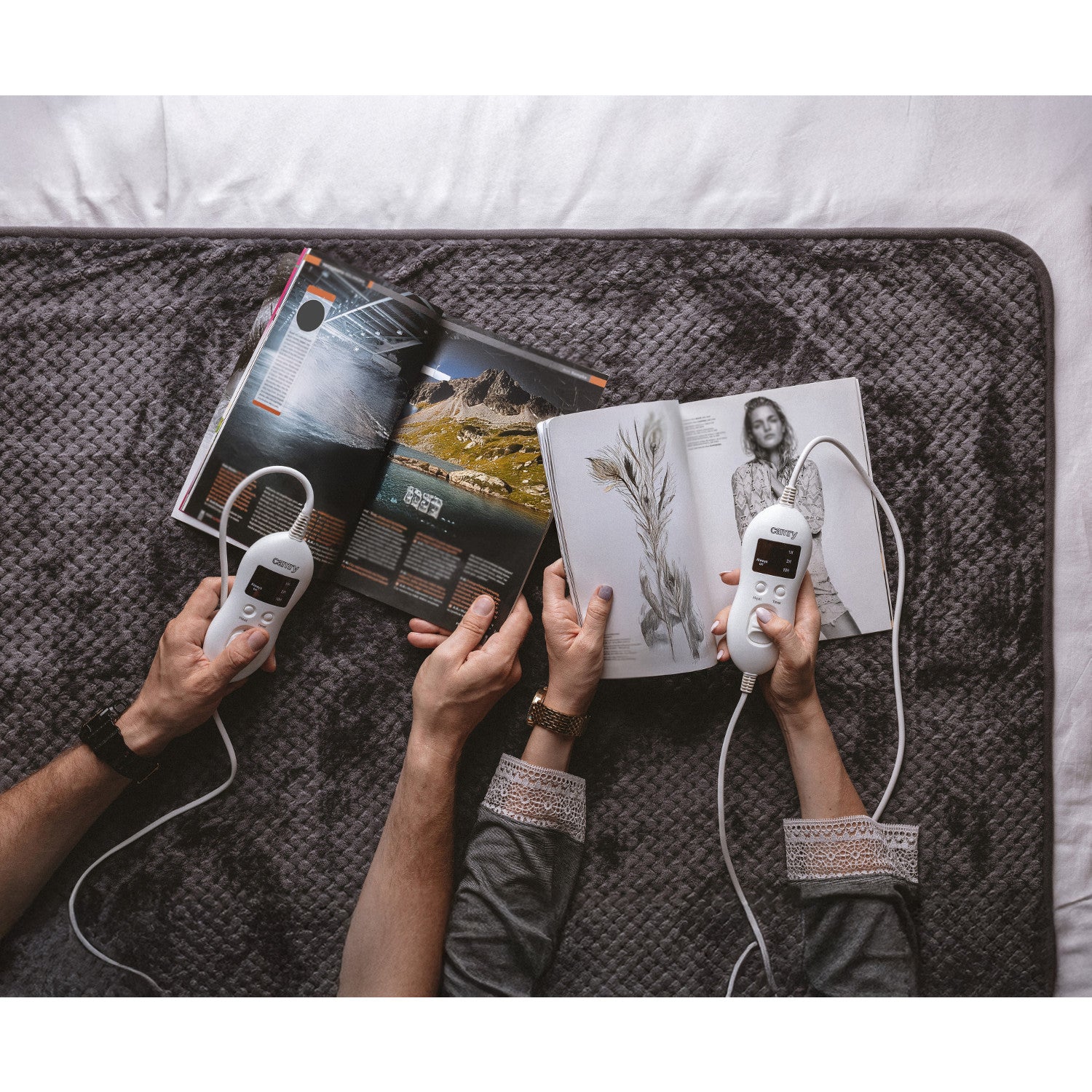 El Camry CR 7417 es más que una manta corriente. Su gran ventaja es que tiene un aspecto muy elegante y es muy práctica. Basta con colocarla debajo o encima de una sábana y disfrutar de temperaturas cálidas. El tejido superior es un forro polar agradable al tacto y el tejido inferior es de poliéster. Esta elección de materiales y las cintas de unión adicionales guiadas bajo el colchón evitan que la manta se mueva en la cama.