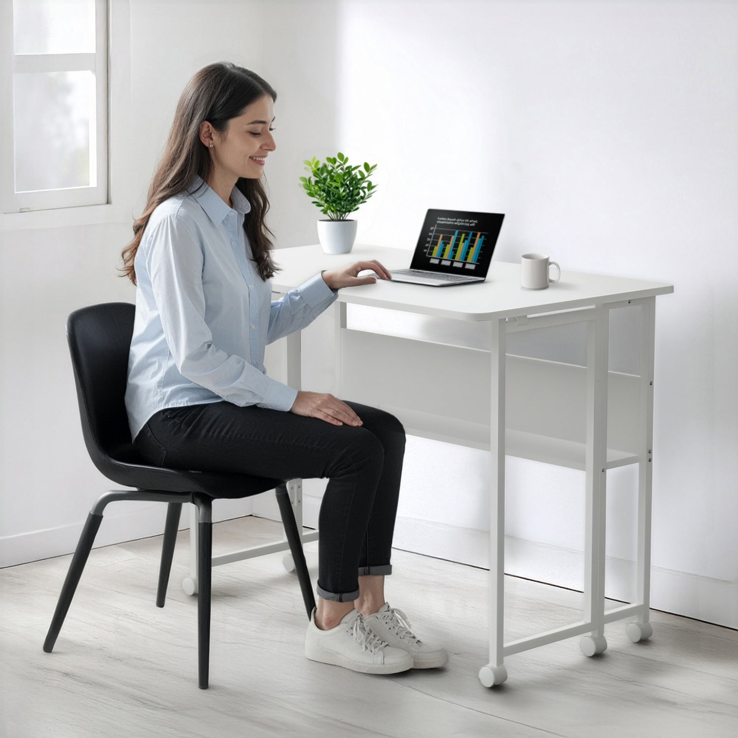 El mueble es perfecto para una amplia gama de usos: como escritorio de ordenador, espacio de estudio, mesa auxiliar o espacio para hobbies y manualidades. Con su diseño plegable, estante y movilidad sobre ruedas, el escritorio es una opción versátil que funcionará en cualquier interior.
