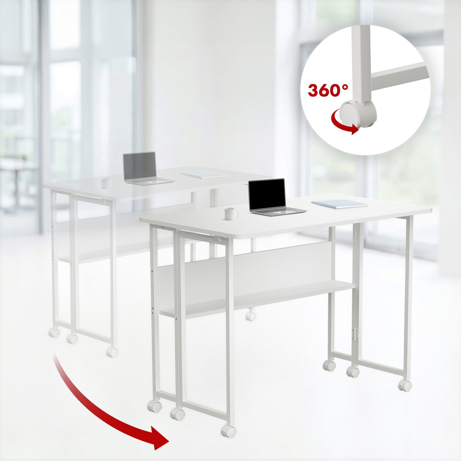 Mesa escritorio plegable Maclean, blanca, móvil, tablero 100x58cm, max. 50kg, MC-126 W