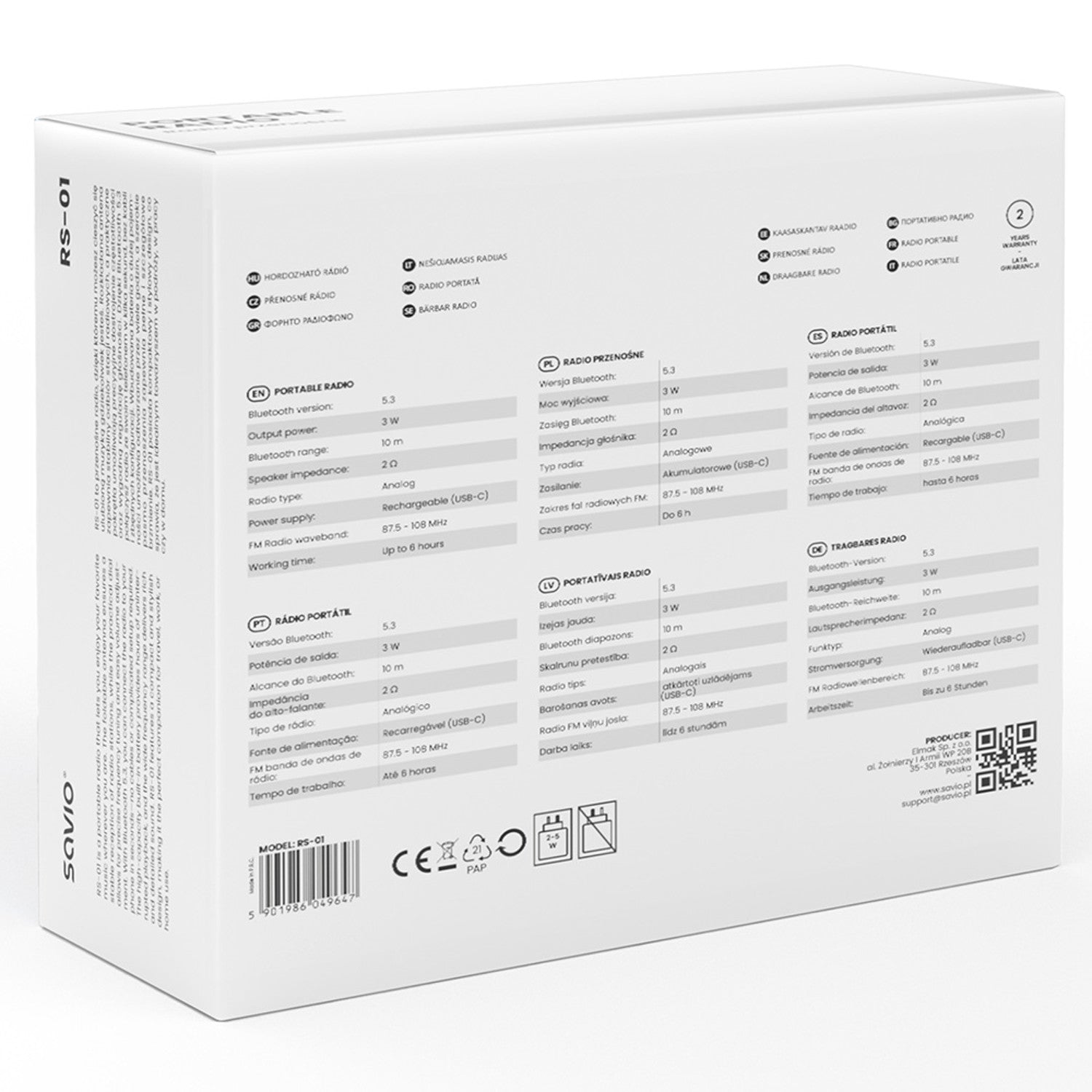 Radio FM portátil Savio, a pilas, Bluetooth, AUX, SAVRS-01