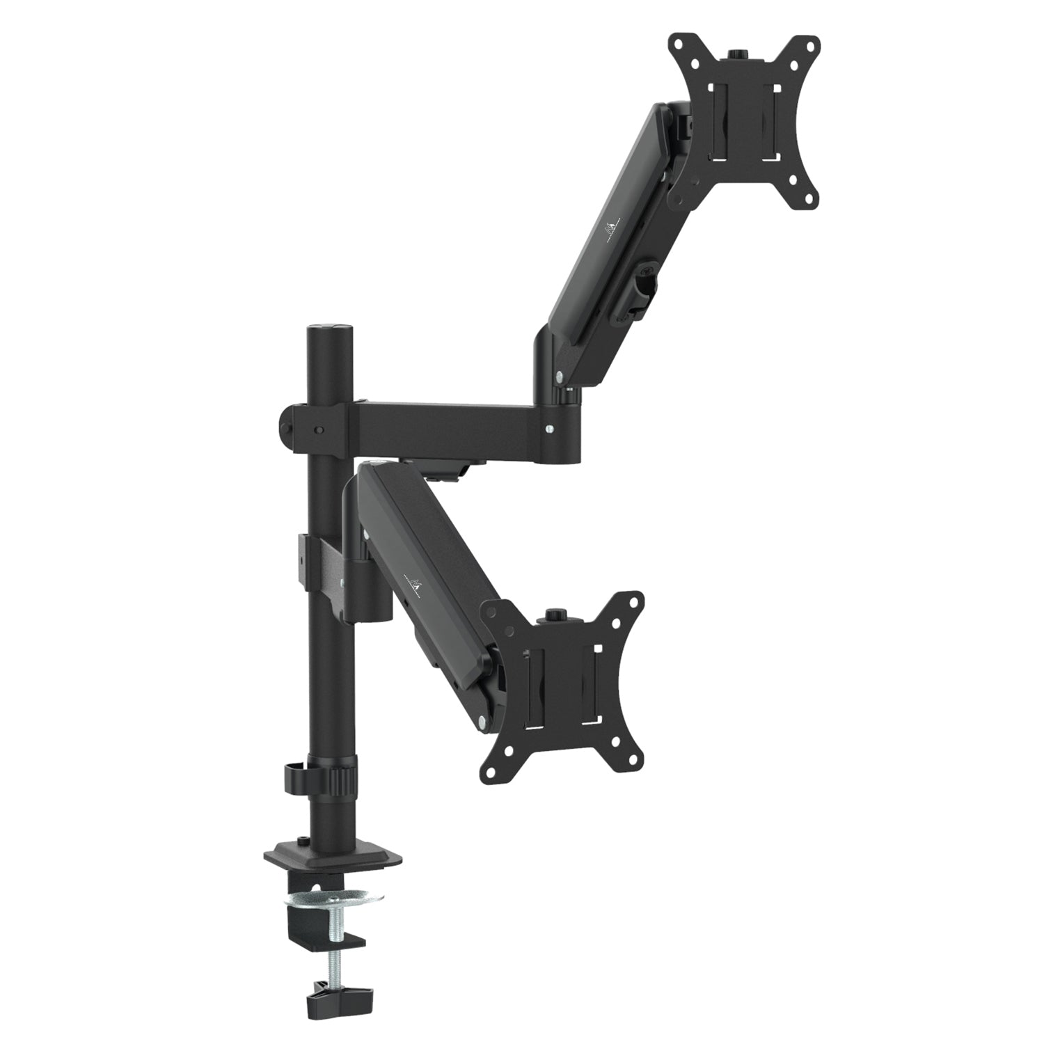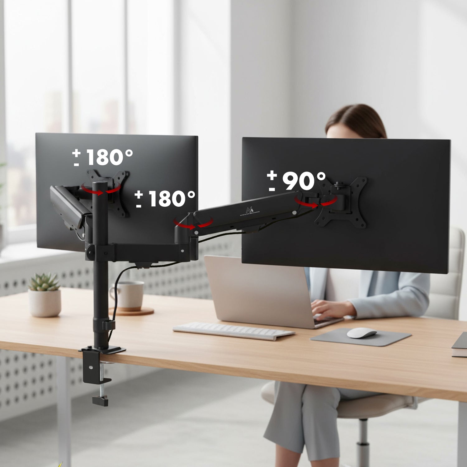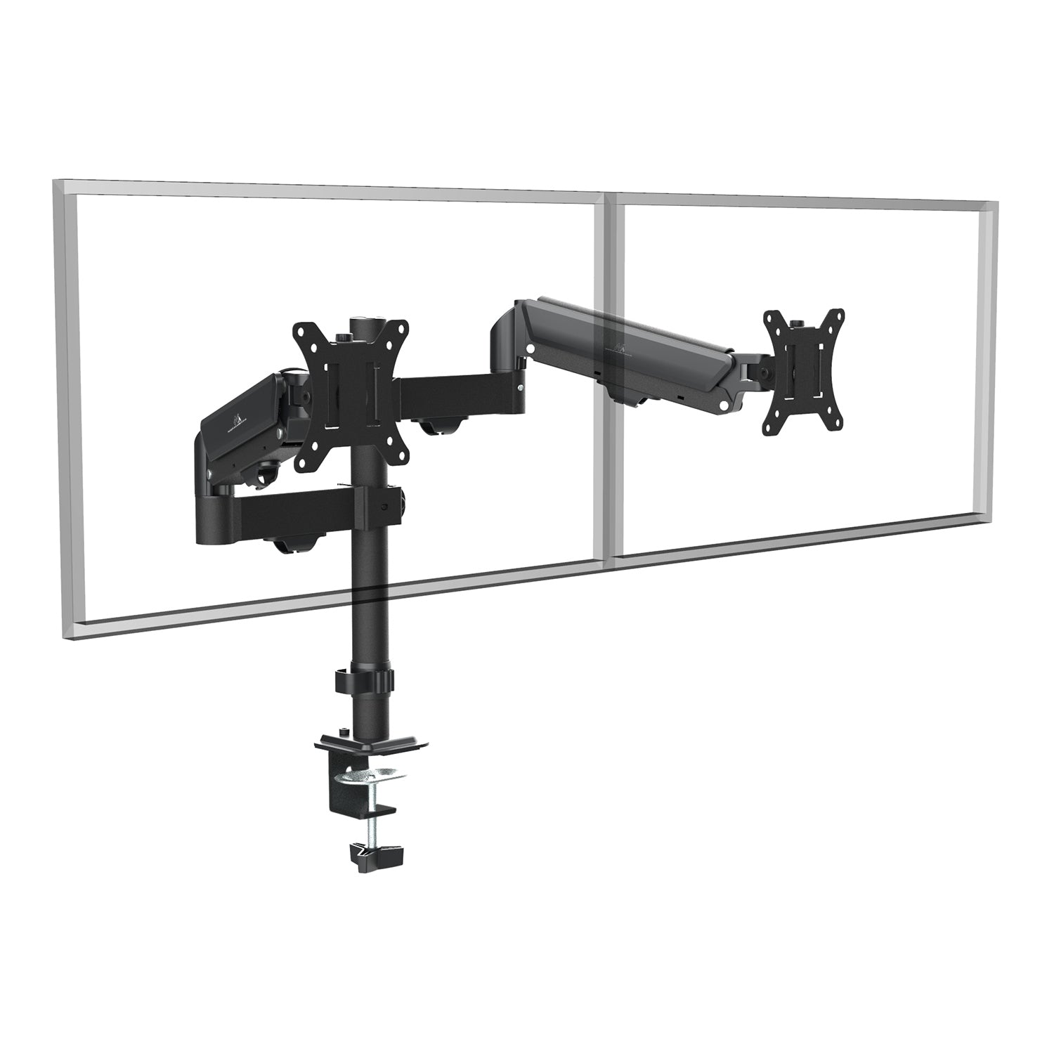 Soporte para 2 monitores Maclean, resorte de gas, 17"-32", 2-10kg, negro, MC-136