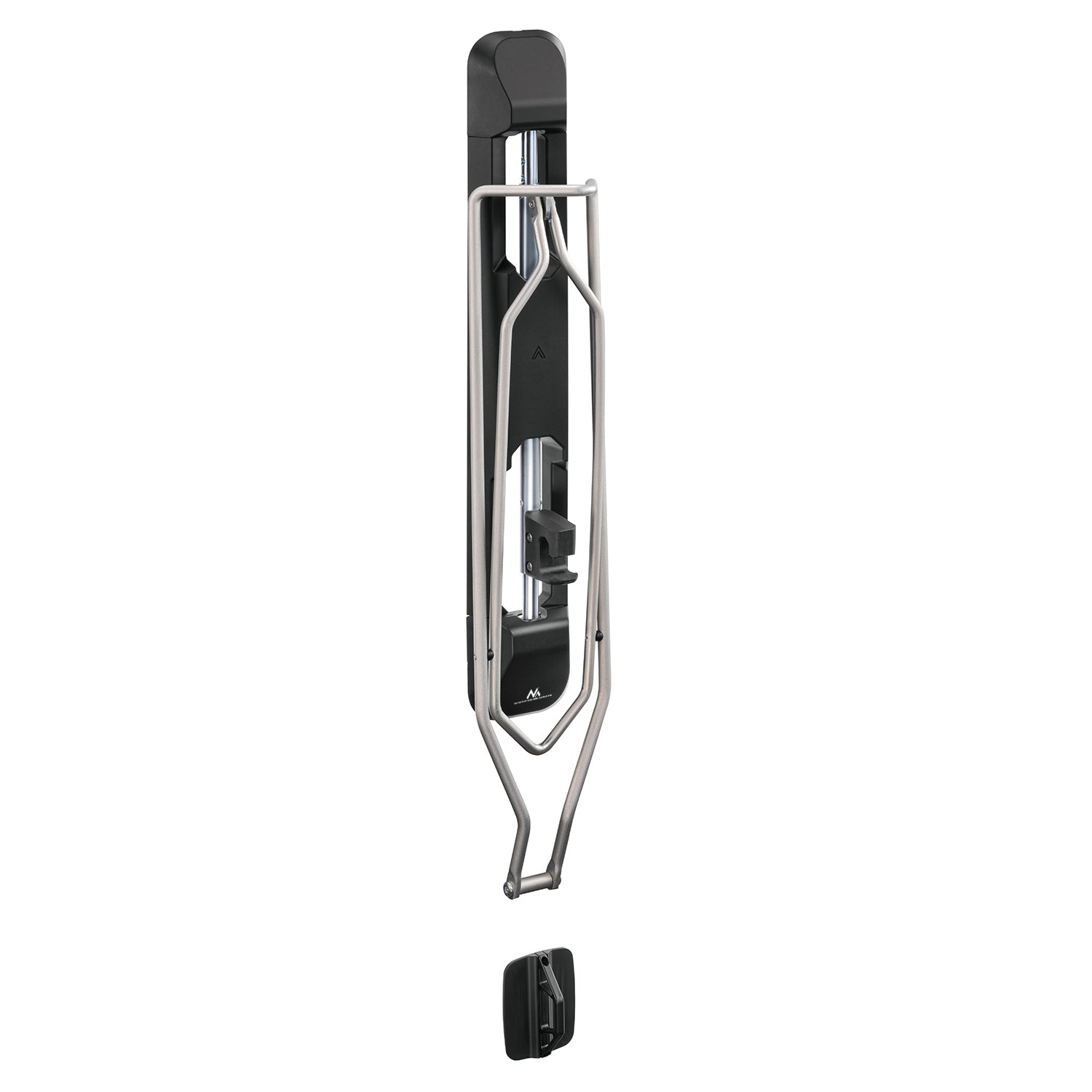 Gracias a su innovador diseño, basta con colocar la bicicleta sobre la rueda trasera e introducir la delantera en el soporte. Una vez colgada la bicicleta, el soporte se puede girar 60 grados hacia la izquierda o hacia la derecha, lo que permite guardar la bicicleta más cerca de la pared.