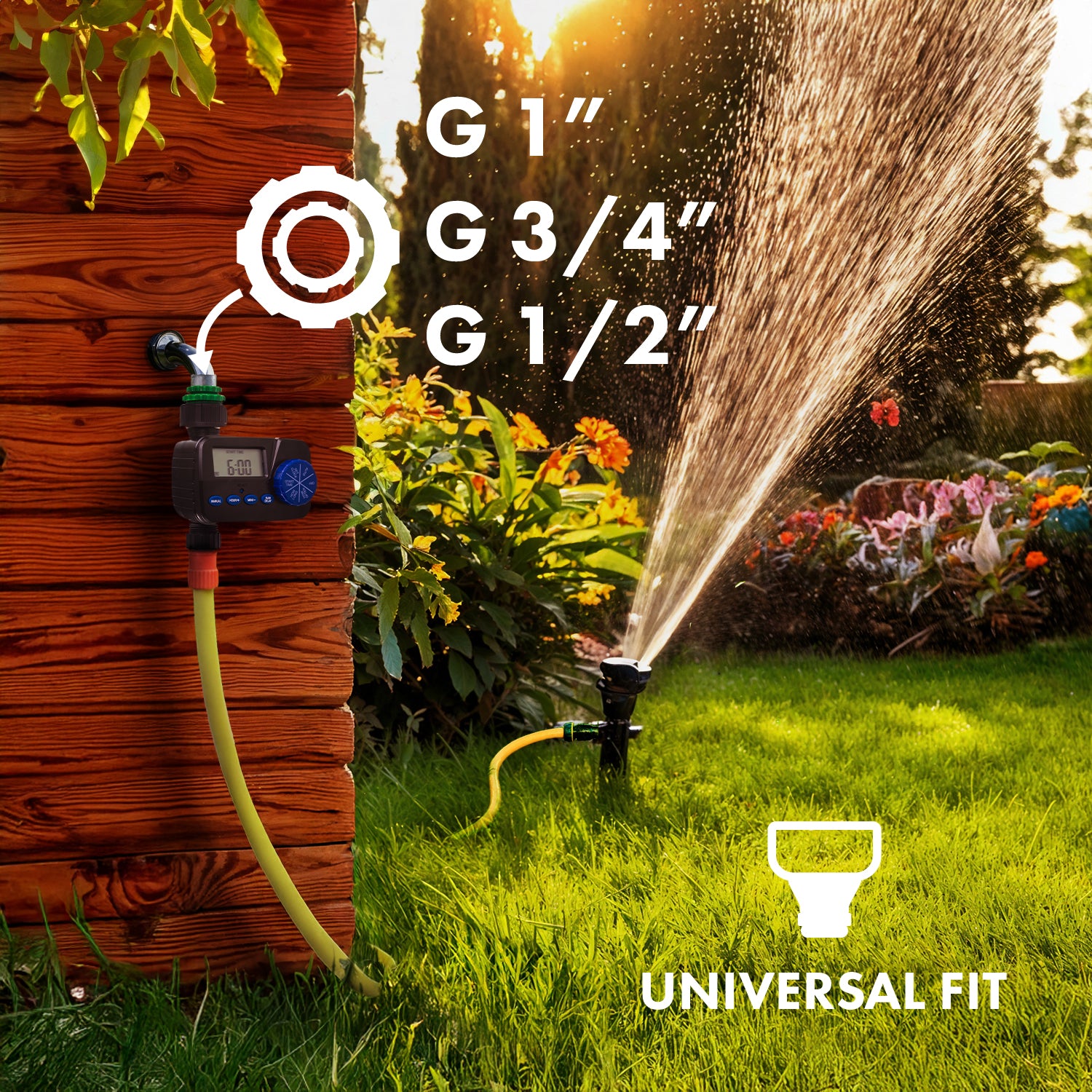 Gracias a su preciso control de riego, el programador GB390 ahorra agua y energía, minimizando el consumo de agua al ajustar el riego a las necesidades reales de las plantas. La opción de retrasar el riego en caso de lluvia y el modo manual hacen que el riego sea aún más eficiente y respetuoso con el medio ambiente.