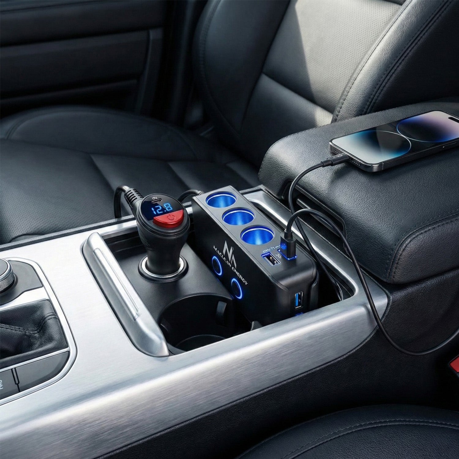 Divisor de isqueiro, voltímetro, 3 soquetes de isqueiro, 1xQuick Charge 3.0, 3xUSB 6.8A, 1x Power Delivery 18W, Maclean MCE218, Max 120W