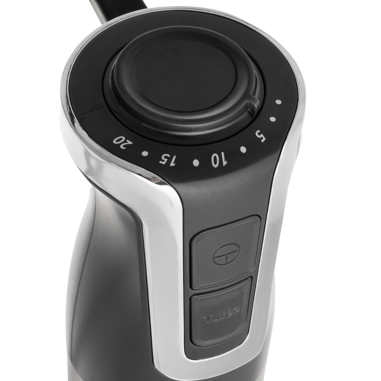 - Pala mezcladora de acero inoxidable: perfecta para purés, sopas cremosas, batidos y mucho más