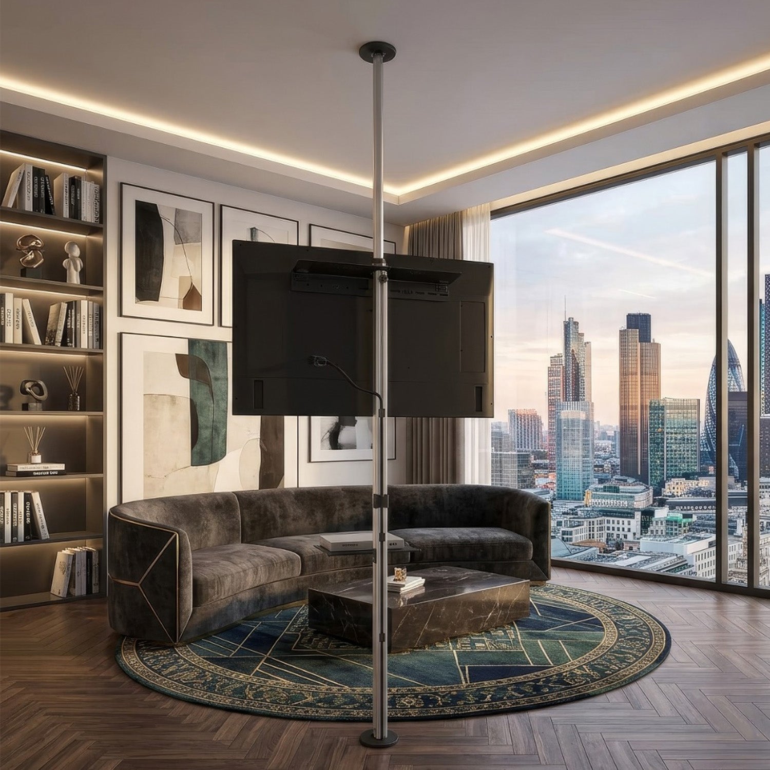 Este suporte é compatível com televisores QLED, OLED, LED, LCD e plasma de 37" a 70" e com um peso até 30 kg. Adequado para todas as marcas com espaçamento padrão VESA até 600x400. A prateleira de 36x25 cm é ideal para dispositivos adicionais, como sistemas de alta fidelidade, consolas de jogos, leitores de Blu-ray ou DVD. A prateleira tem uma capacidade máxima de carga até 5 kg. Graças à sua montagem no teto e no chão, o suporte é adequado para praticamente qualquer divisão. Ideal para salas de estar e escritórios.