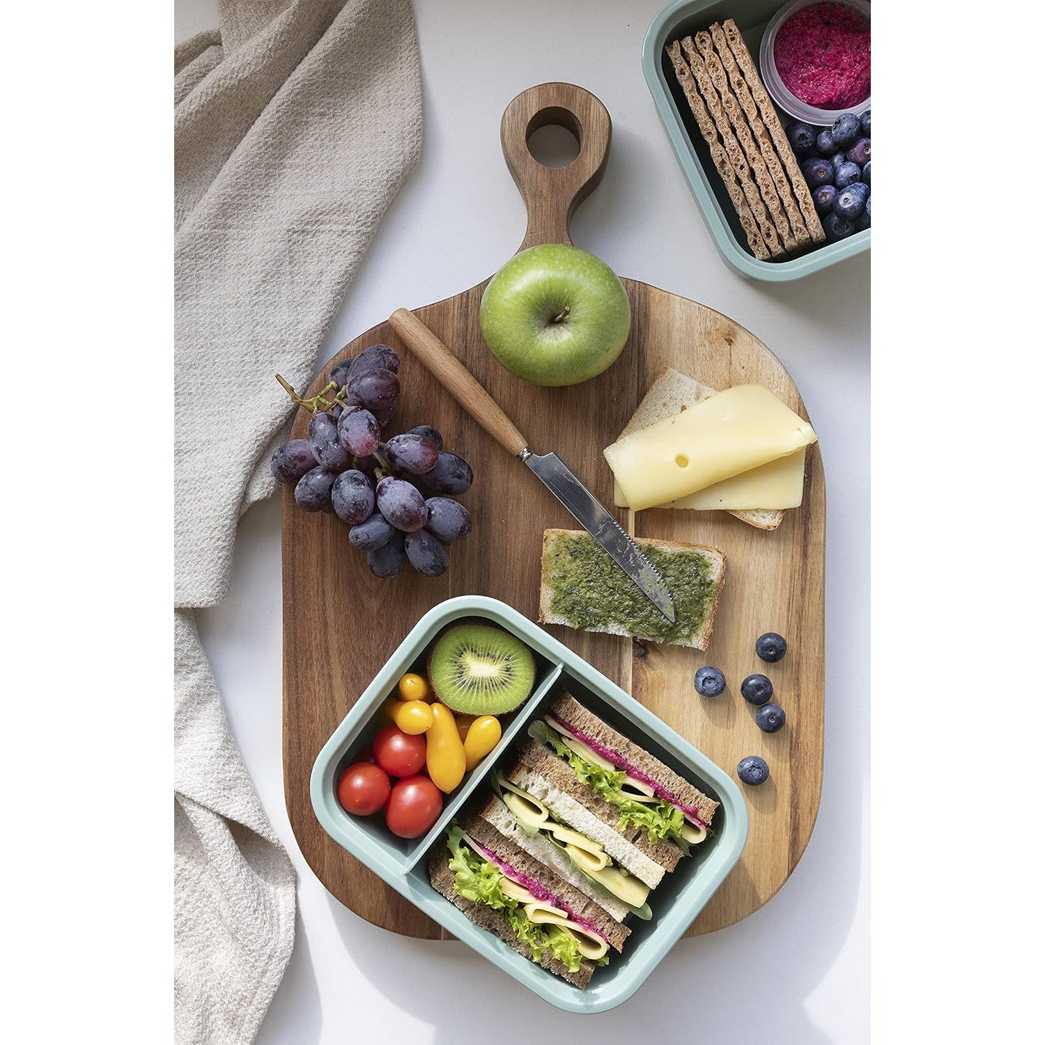 El contenedor rectangular para alimentos Smart To Go Eco Line 0,6+0,3L es la elección perfecta para quienes valoran la comodidad y la practicidad. Gracias a él, podrá llevar fácilmente platos sanos y sabrosos al trabajo, al colegio o de viaje. El recipiente está equipado con un cierre especial en la tapa y robustos cierres que ayudan a mantener los alimentos frescos, así como un compartimento especial que le permite separar los distintos componentes de su comida.